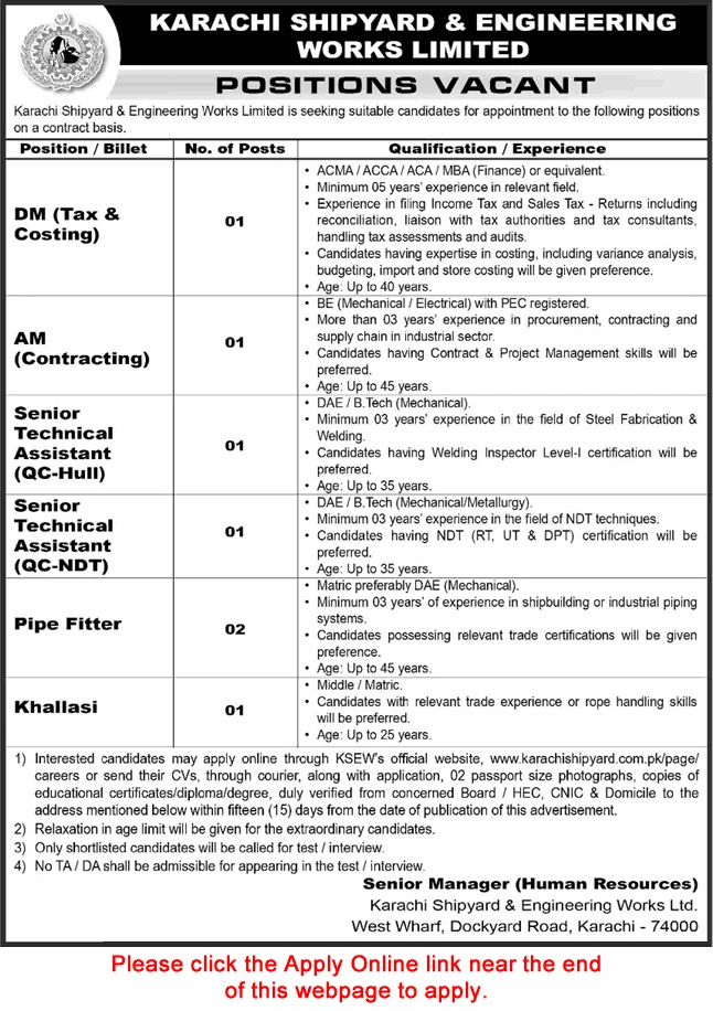 - Online Application: Visit the official KSEW website at www.karachishipyard.com.pk/page/careers to apply online.